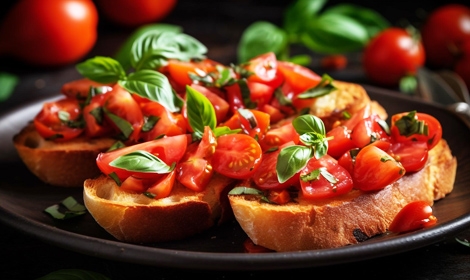 Olive feta devilled egg, Tomato pinenut bruschetta, Caponata crostini
