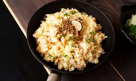 Greens gomae, Mushroom tobanyaki, Burnt garlic rice