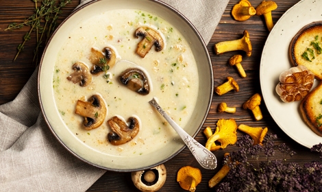 Mushroom cappuccino, Chicken cordon bleu, Sauté legumes, Creamy mashed potato