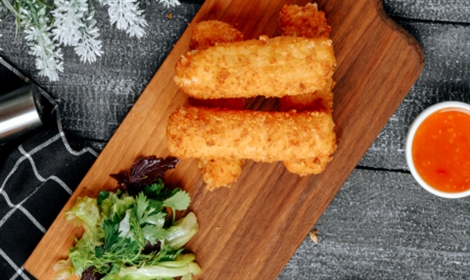 Crumb fried fish, tatar sauce, French fries, side salad
