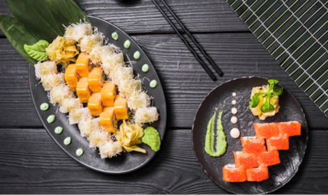 Japanese Sushi rice, Pickle prawn roll, pickle vegetable roll